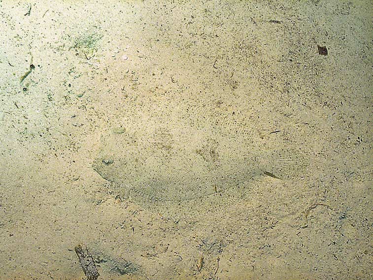 Razok (Bothus podas); 10 cm; na 8 m, kolovoz, otok Vis, Budikovac projekt je u kojem se nauštrb nespretnog kretanja i načina života išlo na razvoj prikrivanja. Koliko je priroda bila uspješna, vidite ili ne vidite, na fotografiji.