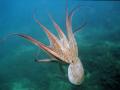 Hobotnica (Octopus vulgaris); 70 cm; na 15 m, veljača, Split, otok Veliki Drvenik, koja raspolaže možda najsavršenijim prikrivanjem u podmorju, ima i mlazni pogon ako je lovac na nju zaista uporan. Brzo će promijeniti mjesto i sakriti se na novom mjestu.